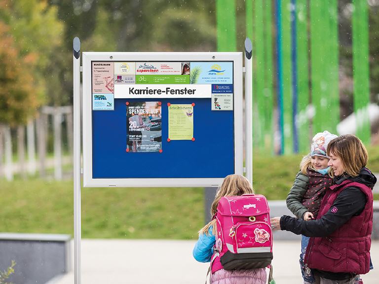 Veröffentlichen Sie Angebote für Ausbildungsplätze, Praktika, professionelle Nachhilfeunternehmen und vieles mehr. Mit den Flyer-Boxen haben Sie zusätzlich die Möglichkeit, weitere interessante Informationsbroschüren und Prospekte auszulegen. Ihren individuellen Anforderungen sind somit keine Grenzen gesetzt.